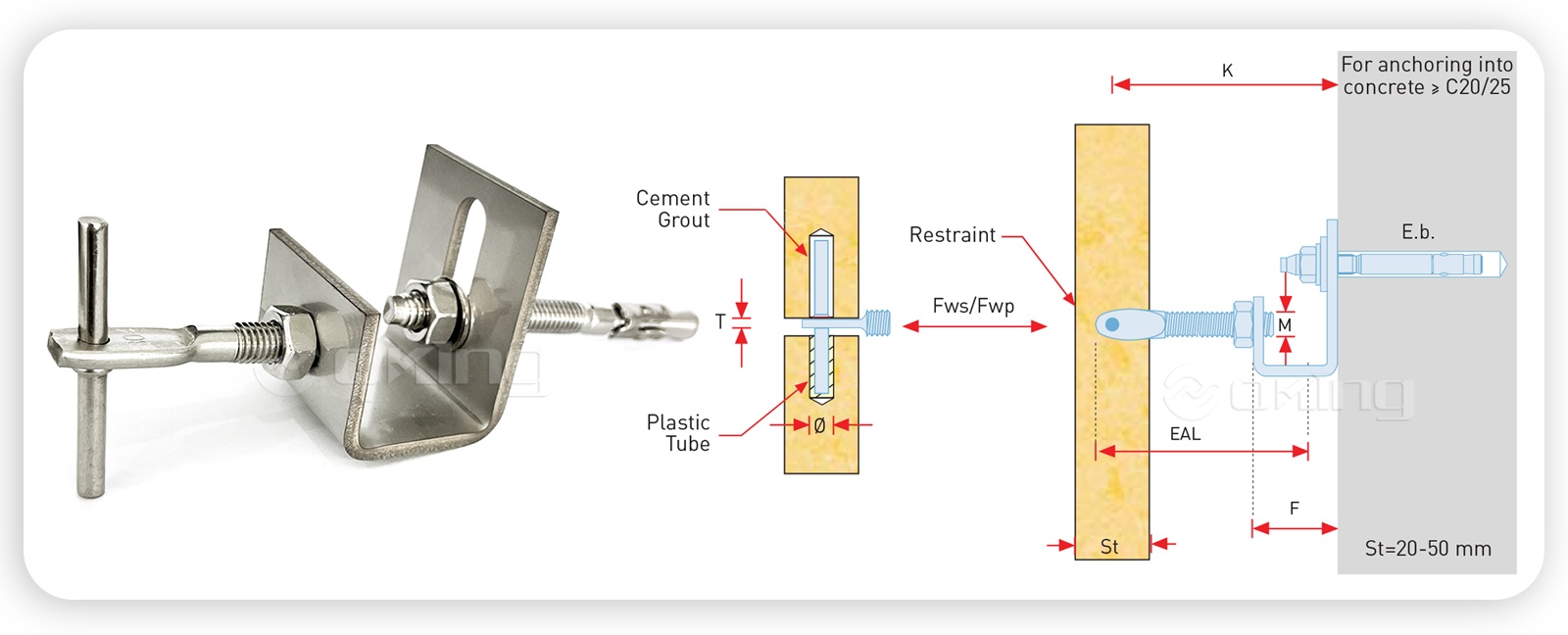 | K (mm) | K - (mm) | K (mm) | F (mm) | Fwp (N) | Fws (N) | E.b.(mm) | ф (mm) | M (mm) | T (mm) | EAL(mm) | |